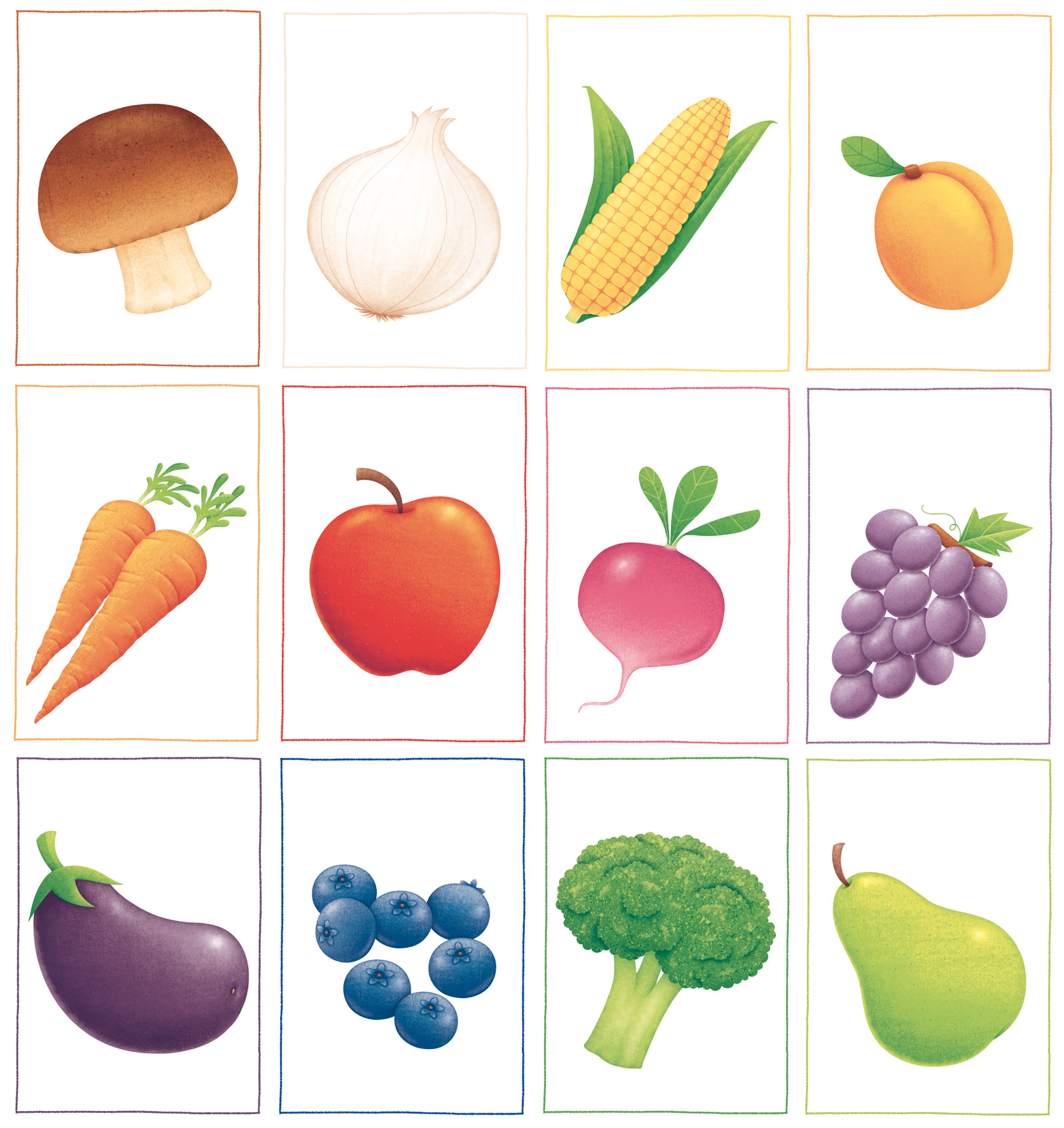 Illustrations from the match up Game & Puzzle "Farmer's Market", Peaceable Kingdom publisher.