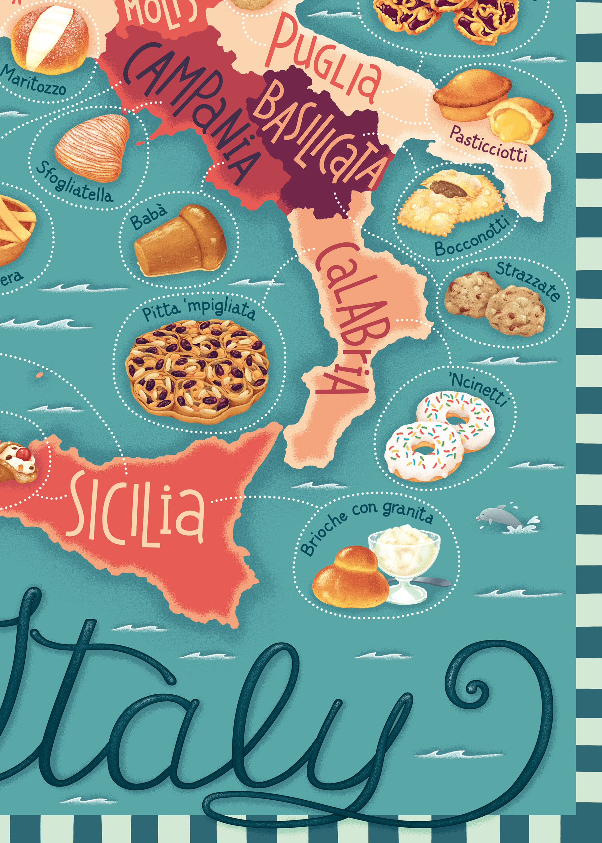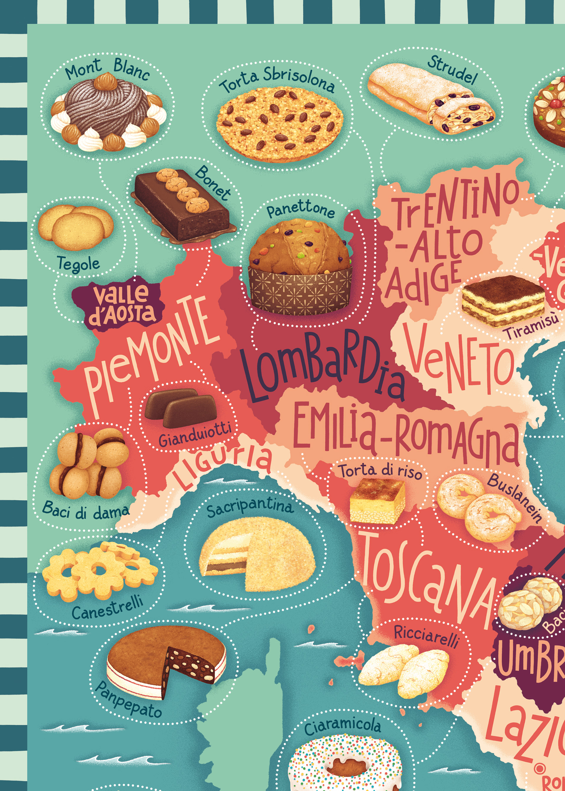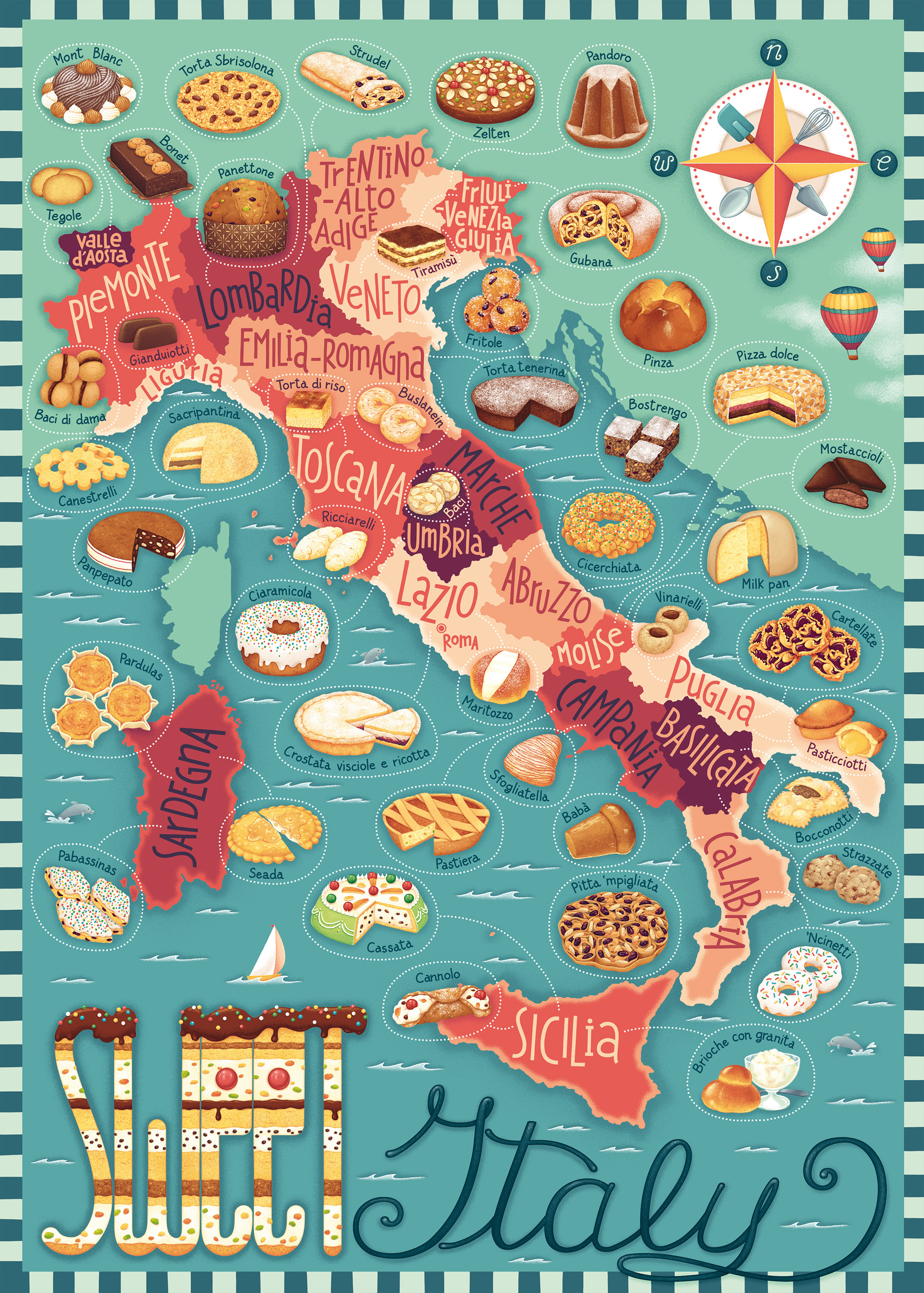 "Sweet Italy" is a map that shows a selection of some typical desserts from the Italian tradition.