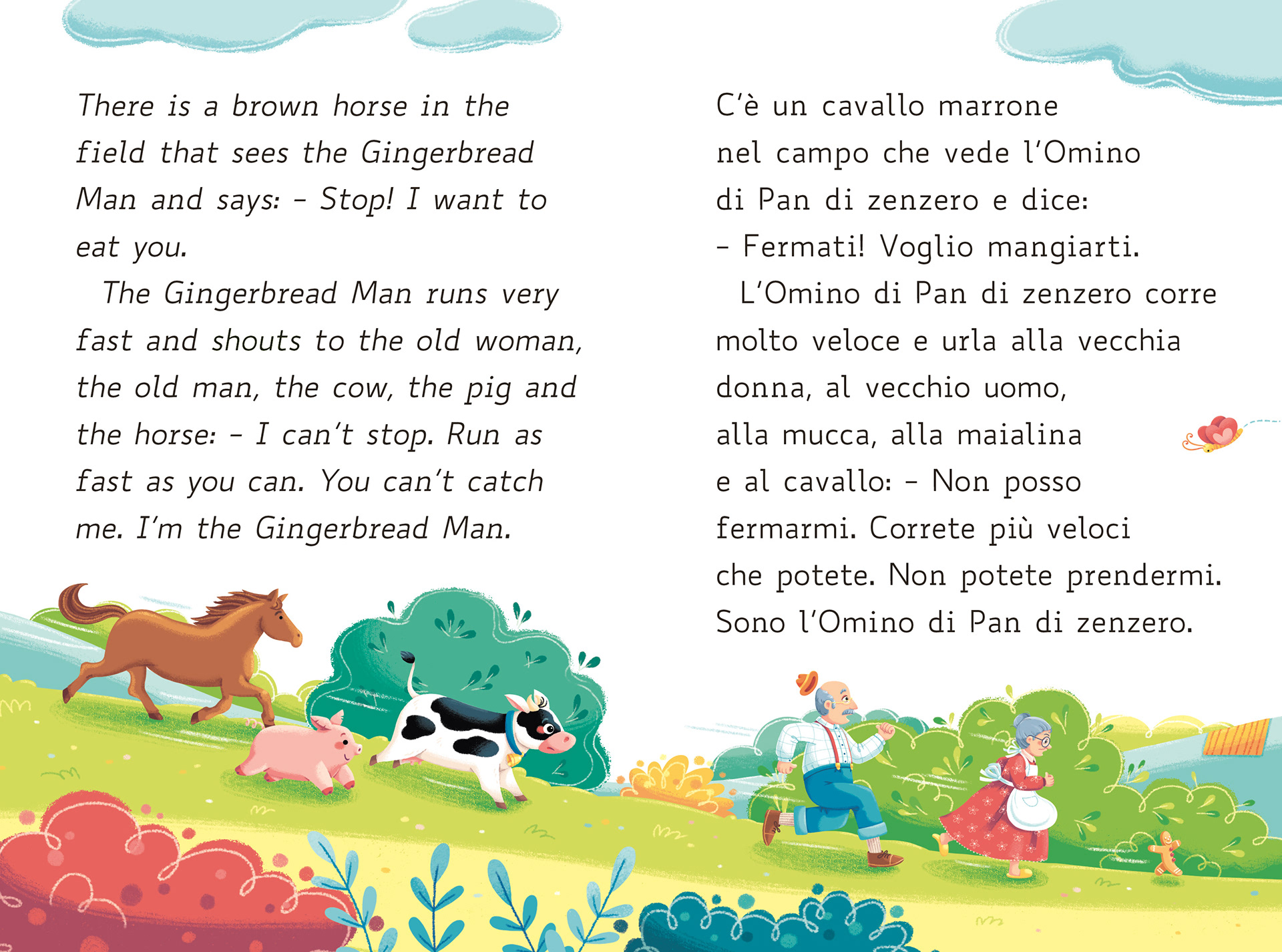 A selection of illustrations from the tale "The Gingerbread Man", published by Editrice La Scuola.
